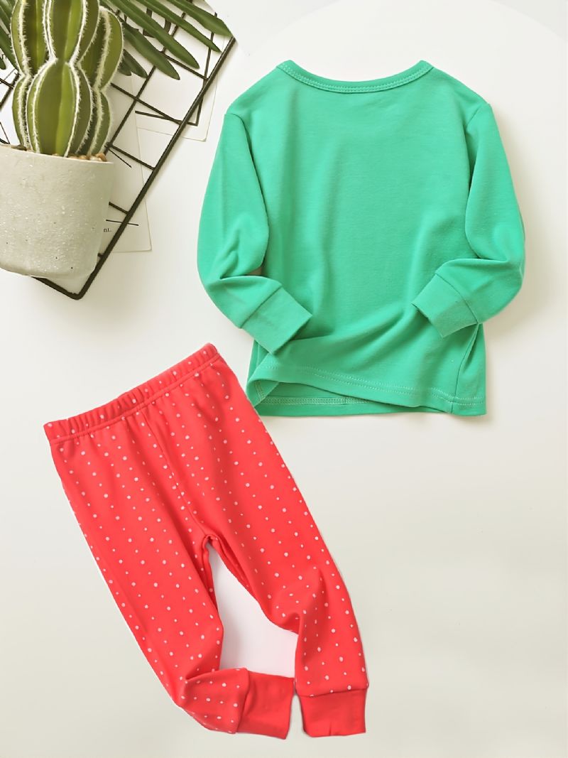 2st Bebis Jultryck Rundhalsad Långärmad Topp & Byxa Set För Flickor Pojkar