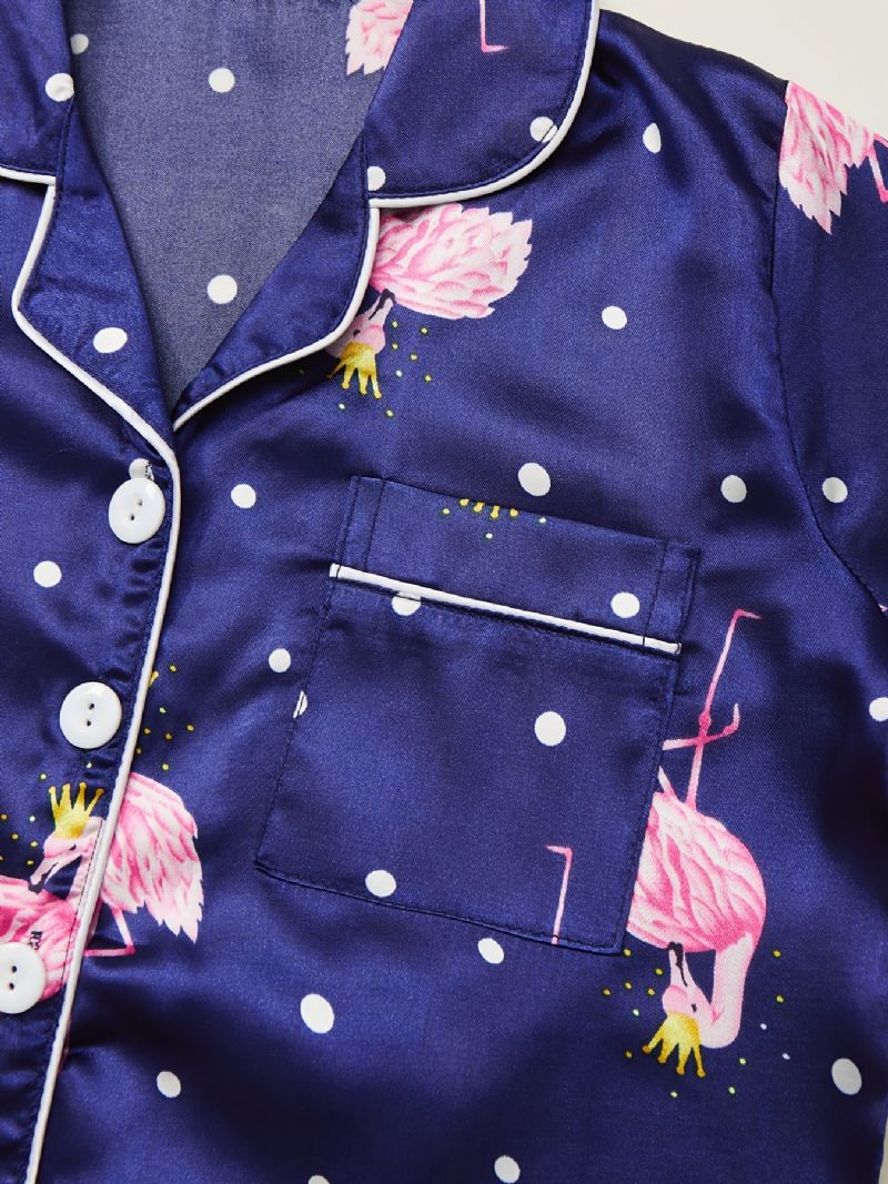 2st Flamingotryckt Sidentjejer Bekväm Pyjamasset