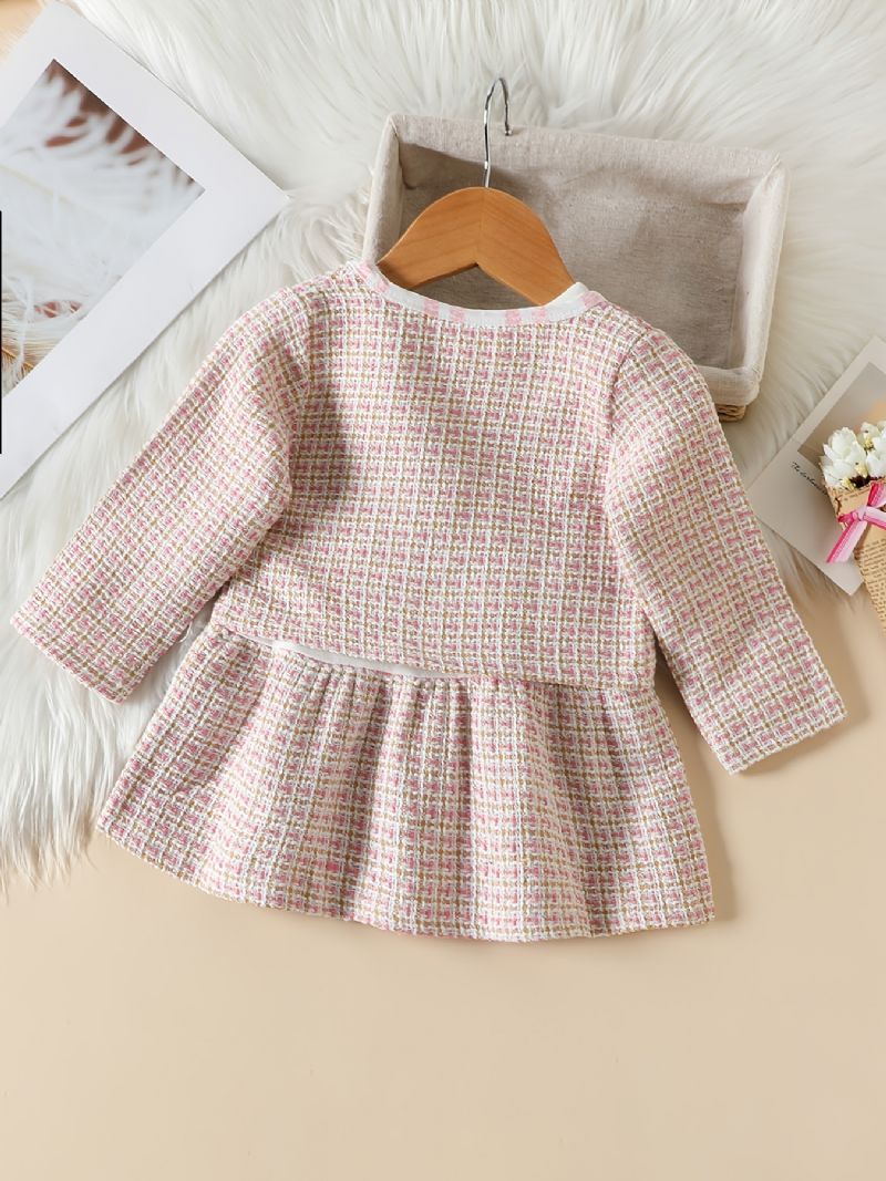 2st Flickor Elegant Set Med Rutig Jacka & Kjol För Vinterfest