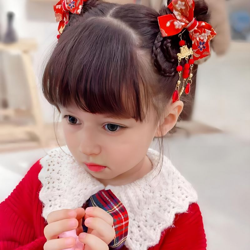 2st Flickor Kinesisk Söt Hanfu Huvudbonad Rosett Hårklämma Peruk Fläta Hårnål Sidoklämma Hårtillbehör Till Vårfest Nyårspresent För Barn