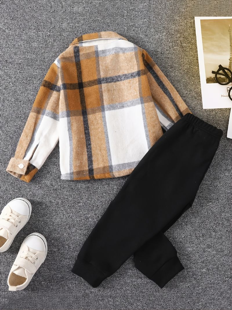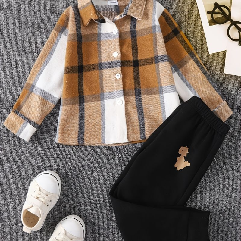 2st Pojkar Rutig Långärmad Skjorta & Byxor Sport Set