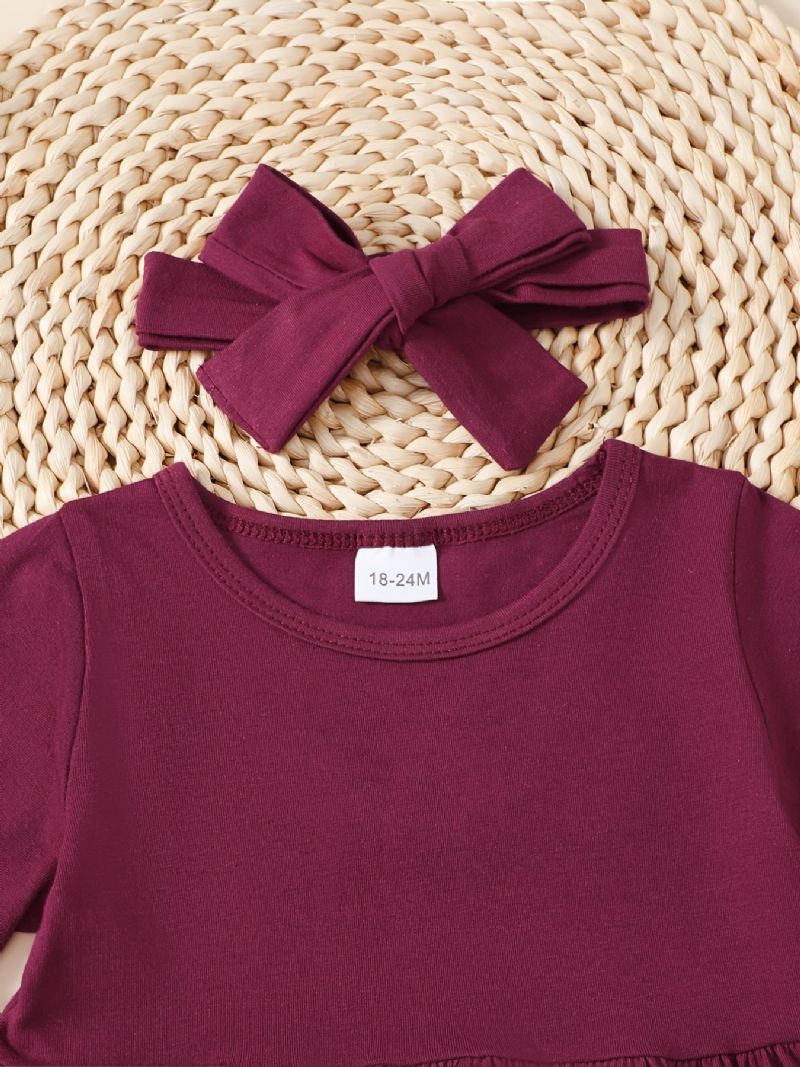 3 St / Set Flickor Långärmad Flare Topp & Rippade Print Jeansbyxor & Pannband