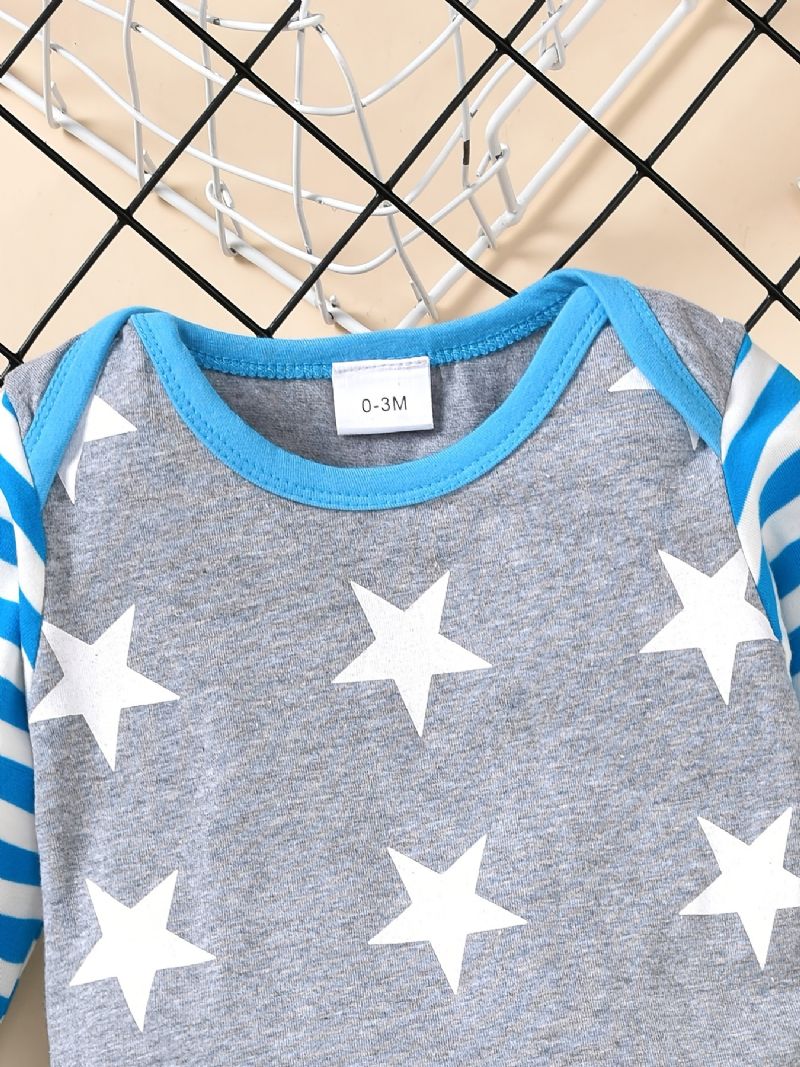 3st Småbarn Bebis Stripe Print Långärmad & Byxor & Hatt Set För Pojkar