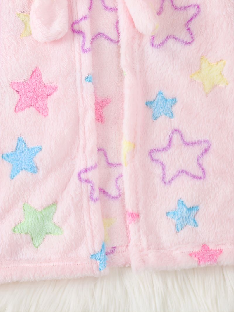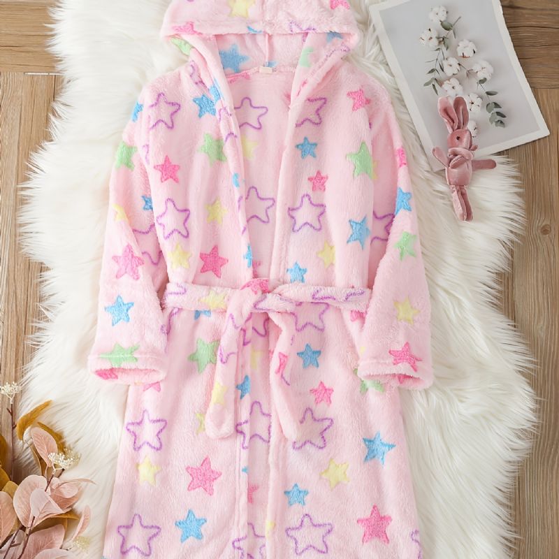 Badrock Med Huva För Flickor Stjärnmönster Mjuk Varm Flanell Pyjamas Med Bälte Vinterkläder För Barn