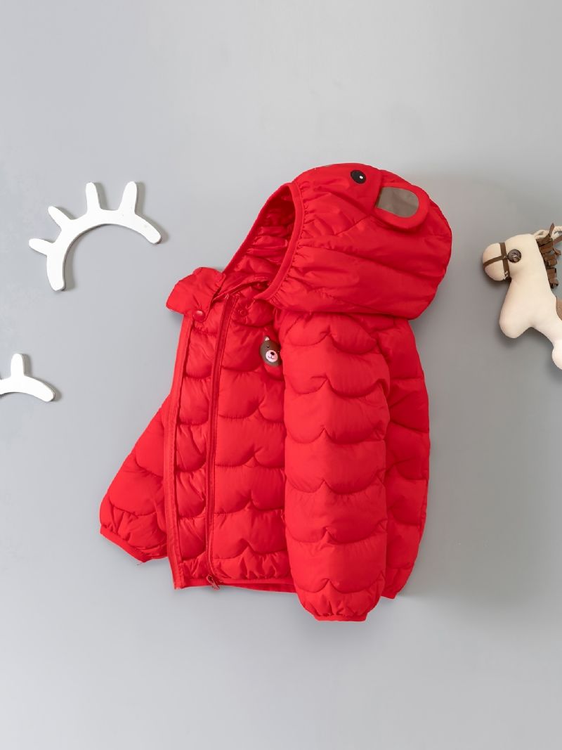Barnflickor Pufferrock Bear Print Dragkedja Cartoon Ear Huvjacka Barnkläder