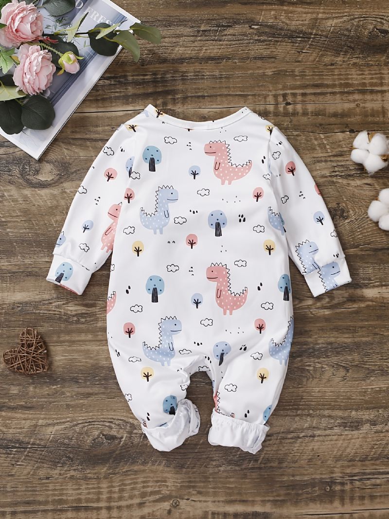 Bebis Flickor Långärmad Jumpsuit Med Dinosauriemönster Bebiskläder