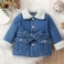 Bebis Flickor Lapel Denim Jacka Med Rosett Bälte För Höst Vinter Ny