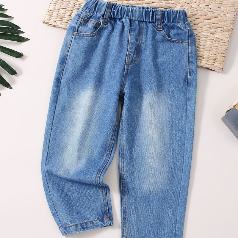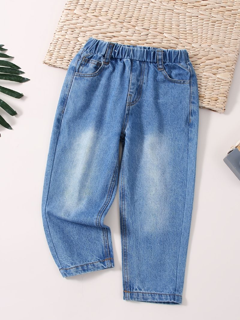 Bebis Flickor Retro Jeans Casual Enfärgad Elastisk Midja Jeansbyxor Barnkläder