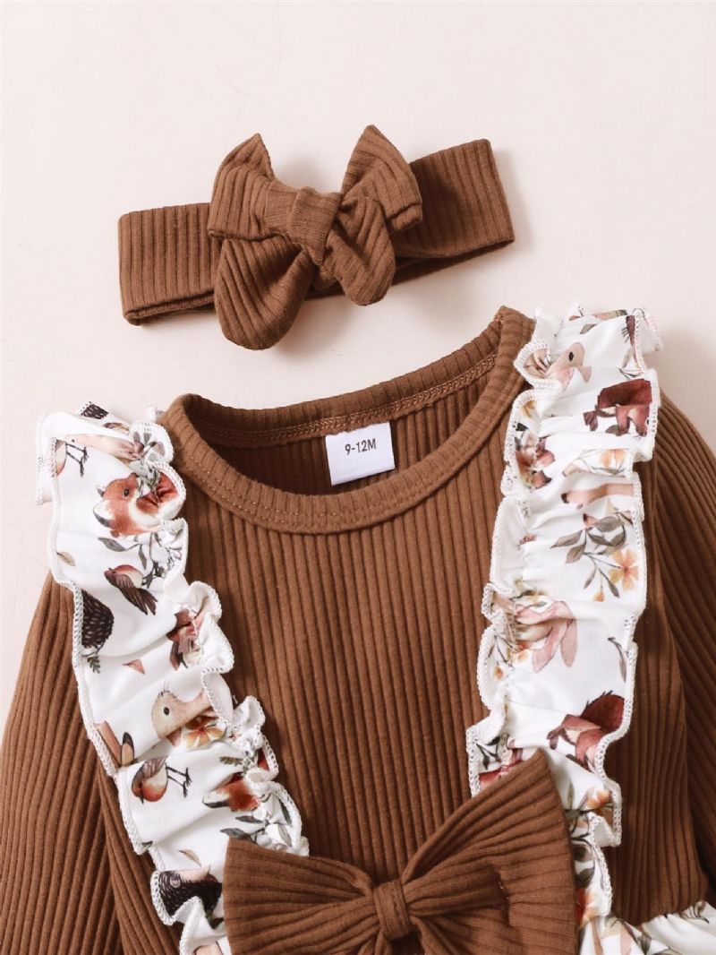 Bebis Flickor Romper Long Sleeve Animal Print Jumpsuit & Pannband