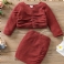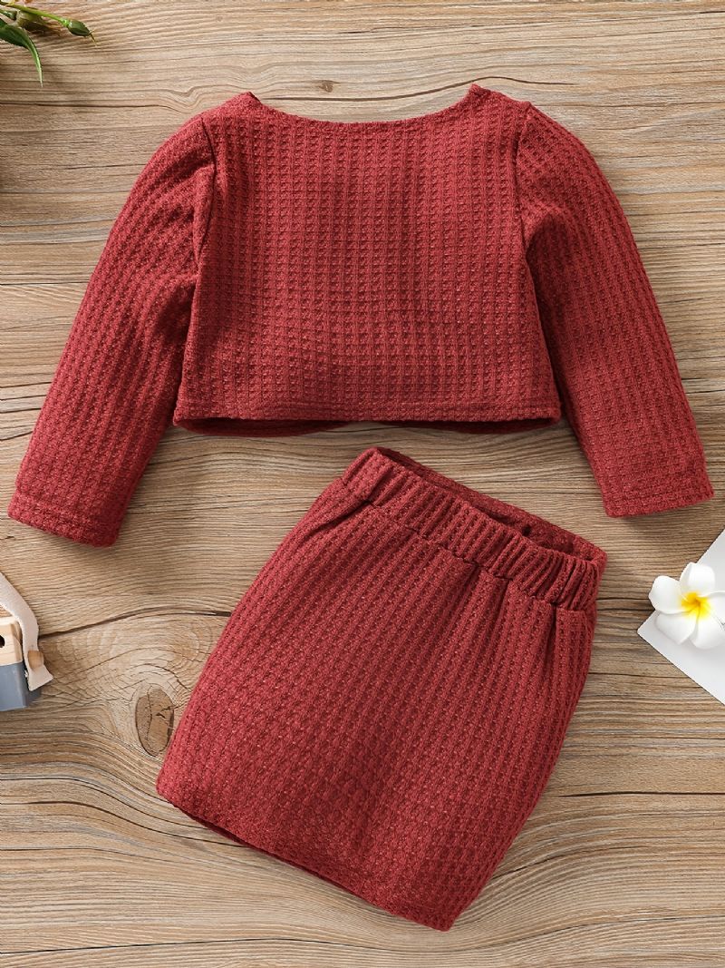 Bebis Flickor Stickad Kjol Set Långärmad Enfärgad Plisserade Toppar & Resår Midja Set