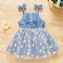 Bebis Flickor Suspender Mesh Blommigt Tryck Bomullsklänning