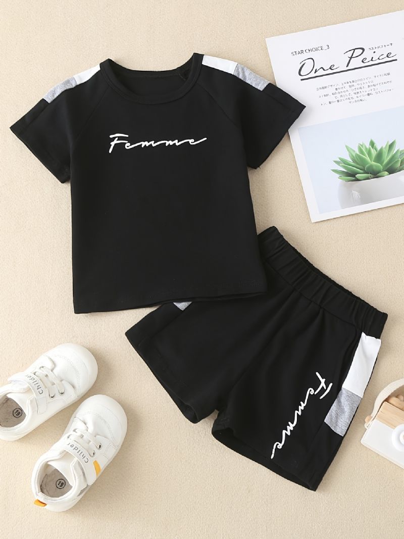 Bebis Pojkar Bokstavstryck Sport Set Splicing Kortärmade Shorts Barnkläder