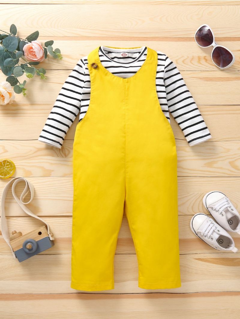 Bebis Pojkar Bomull Randig Topp & Enfärgad Overall Kostym