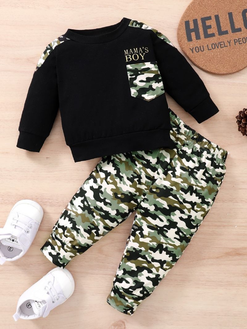 Bebis Pojkar Camo Pullover Sweatshirt & Matchande Joggingbyxor Bebiskläder
