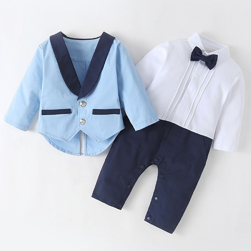 Bebis Pojkar Colorblock Långärmad Jumpsuit + Matchande Jacka Bebisdopdräkter Bebiskläder