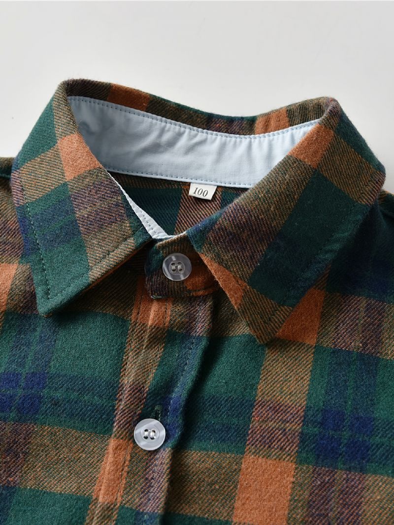 Bebis Pojkar Rutiga Skjortor Button Down Långärmade Barnkläder