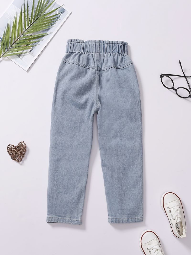 Broderi Rosett För Flickor Jeans Med Raka Ben Med Resår I Midjan Barnkläder