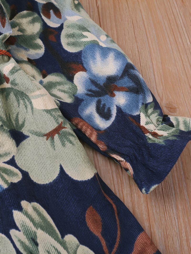 Flickklänningar Vintage Enkelknäppt Klänning Med Snörning Med Blommönster För Barn