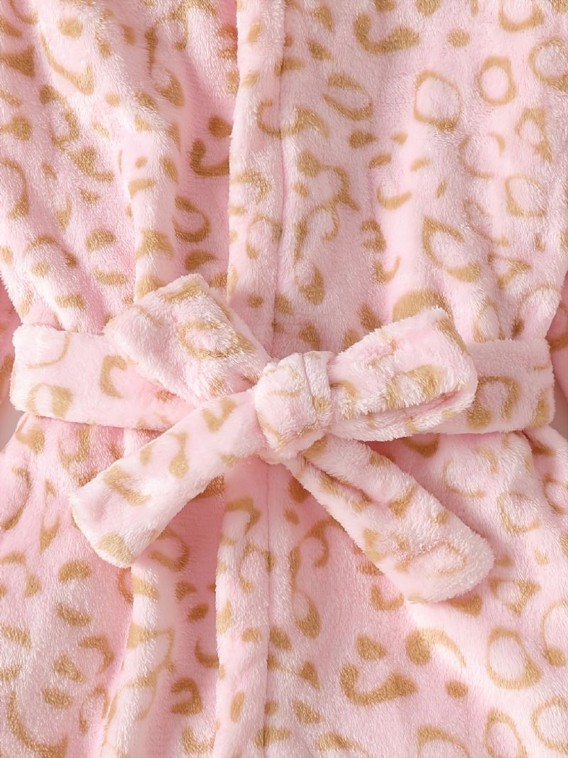 Flickor I Plysch Rosa Långärmad Badrock Och Bälte Med Huva