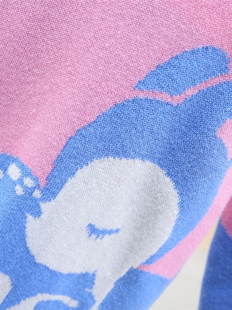 Flickor Juloutfit Tröja Blommor Hjorttryck Rundhalsad Långärmad Stickad Pullover Barnkläder