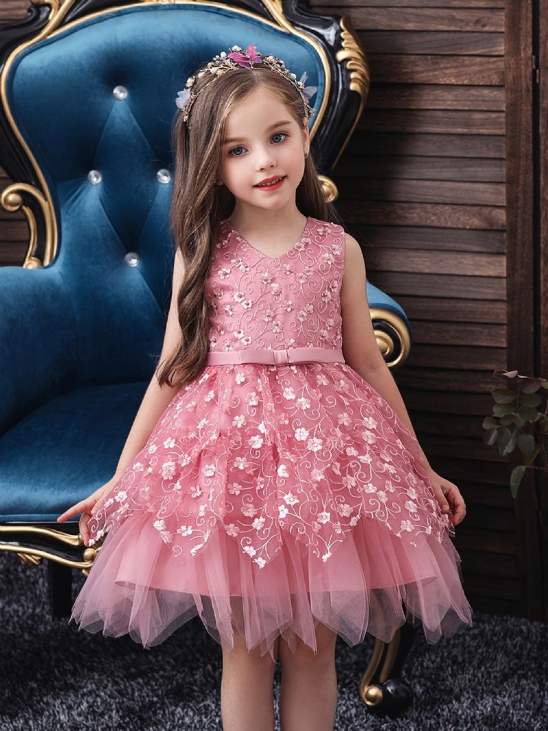 Flickor Prinsessklänning Ärmlös Blomma Broderi Mesh Tutu Klänning Prestanda Bröllop Blomstertjejer Till Afton Födelsedagsfest Barnkläder