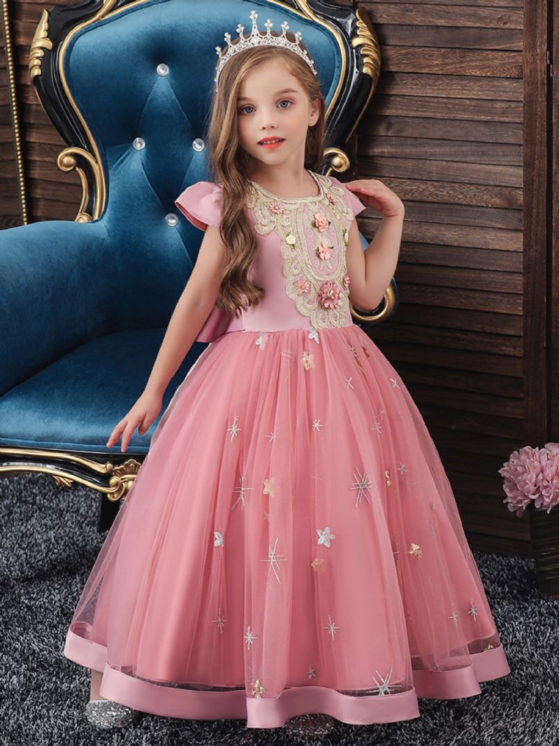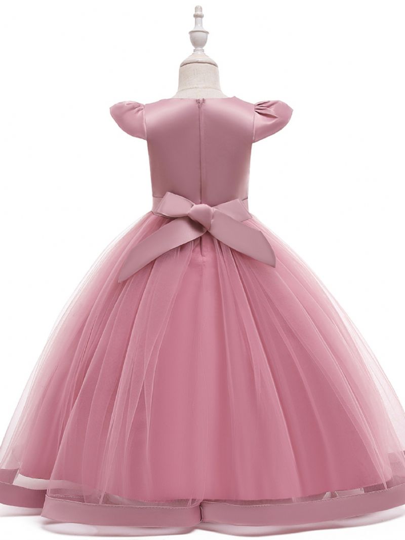 Flickor Prinsessklänning Kortärmad Mesh Tutu Klänning Prestandaklänning Bröllopsblomma För Afton Födelsedagsfest Barnkläder