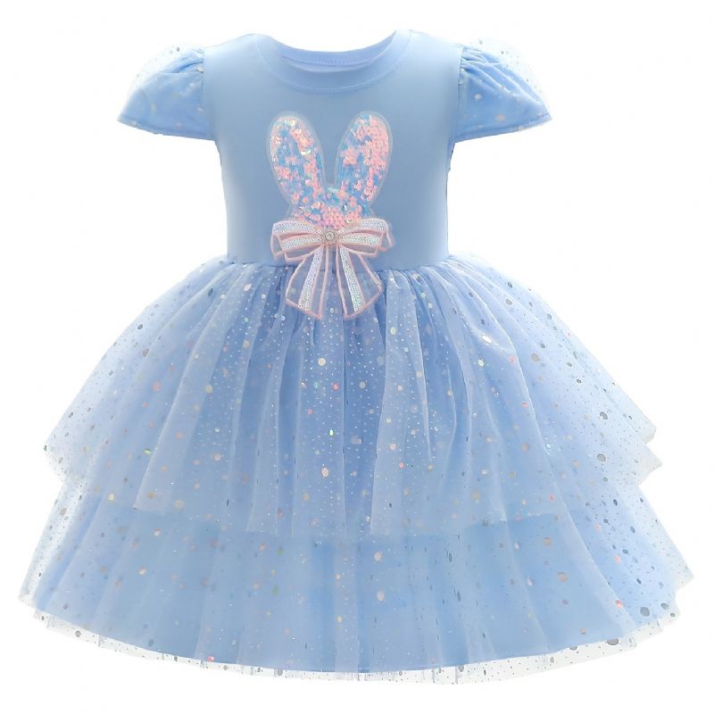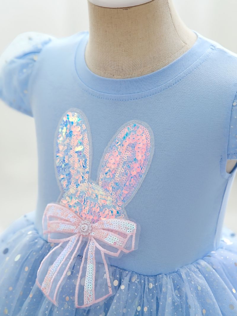 Flickor Prinsessklänning Kortärmad Paljett Kanin Mesh Tutu Klänning Prestandaklänning För Födelsedagsfest Barnkläder