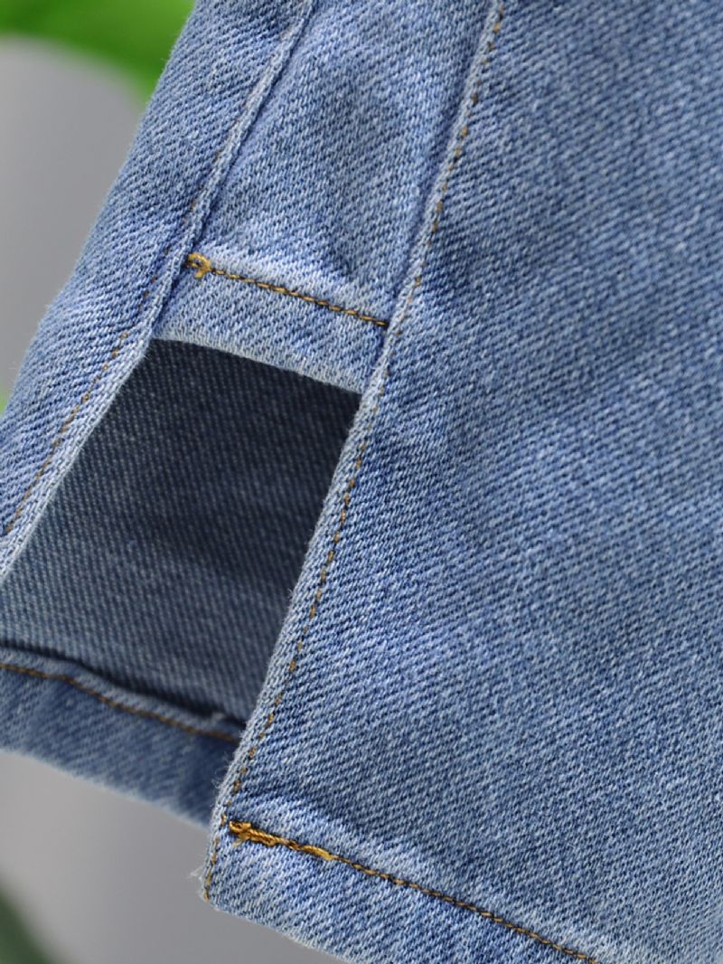 Flickor Solid Denim Eleganta Jeans Med Sidofickor Casual Byxor