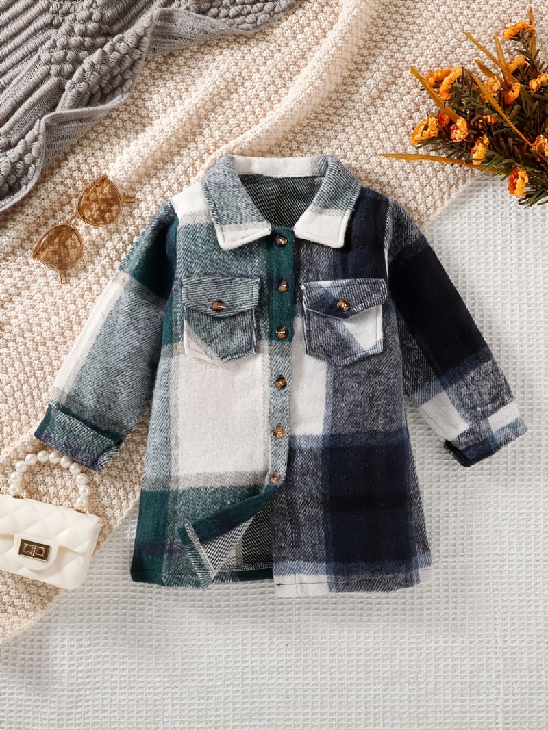 Flickor Warm Rutig Lapel Long Sleeve Pocket Button Jacka