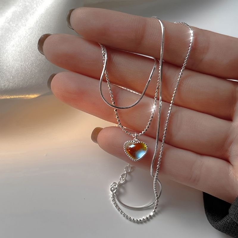 Hjärtformat Hängehalsband Med Silverfärgat Chokerhalsband Chic Design För Kvinnor Flickor Dagligt Slitage