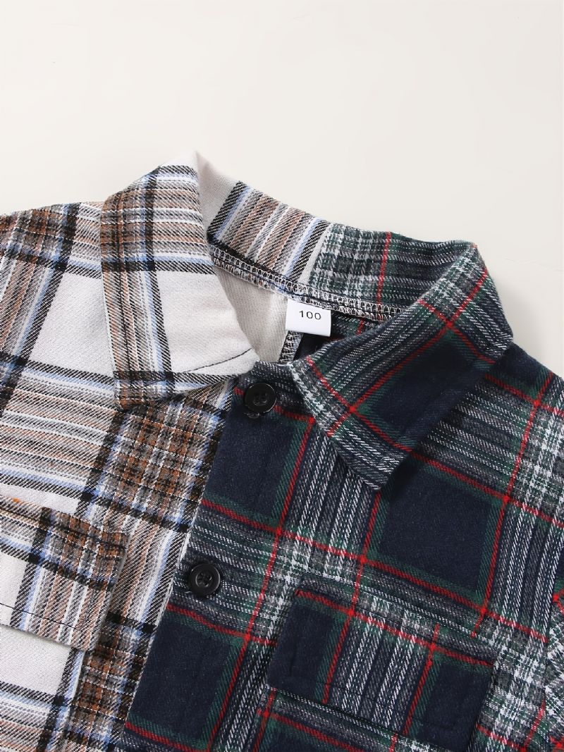Höstvinter Nya Pojkar Plädsömmar Långärmade Skjortor Med Knappar