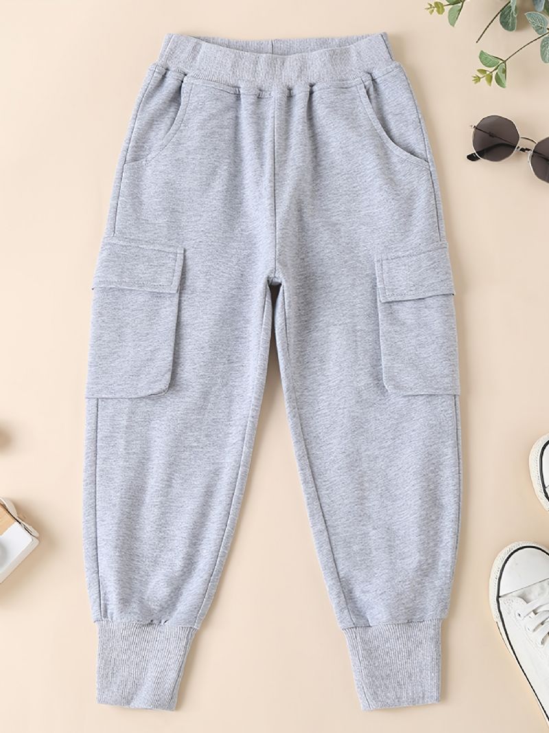 Joggerbyxor I Bomull För Pojkar Med Resår I Midjan Och Sidfickor