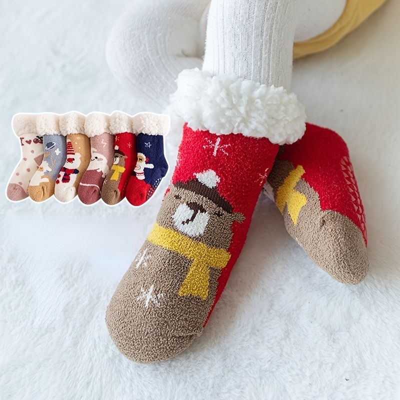 Julstrumpor Bebis Coral Fleece Förtjockade Varma Strumpor Halkfria Småbarnsgolvstrumpor För Pojkar Flickor Vinter