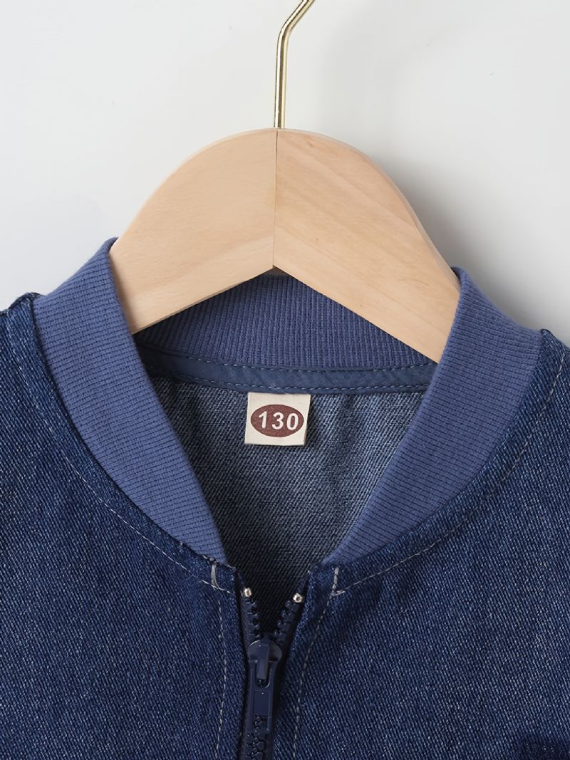 Pojkar Zipper Up Denim Bomber Jacka Barnkläder