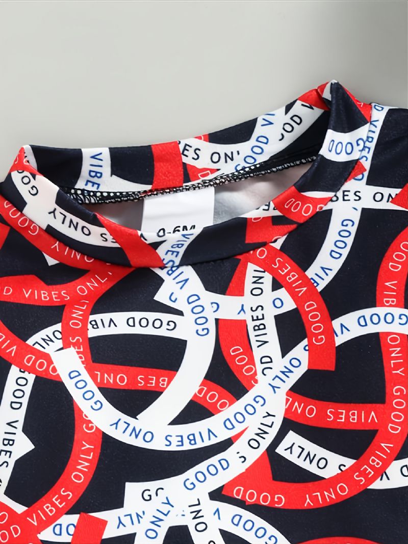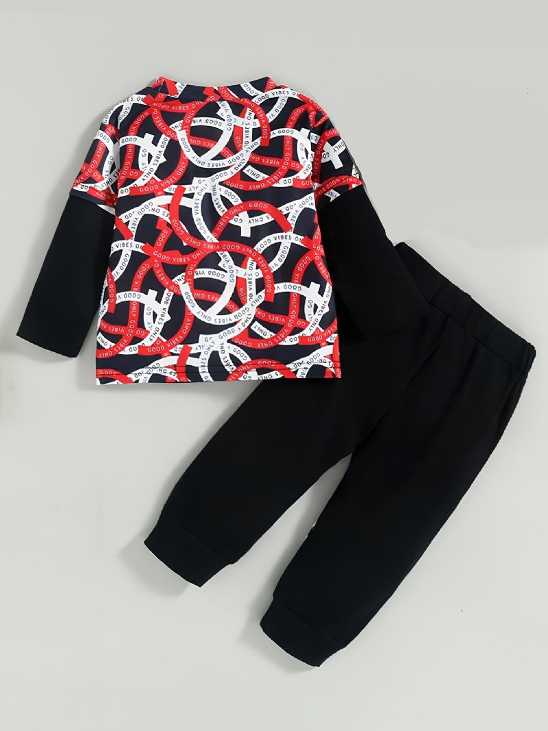 Pojkars Brevtryck Långärmad Topp Svart Lapptäcketryck Byxor Set