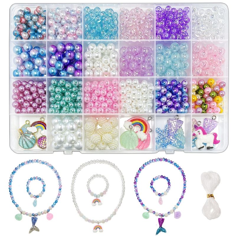 Sjöjungfruberlock Gör Det Själv Smycken Enhörning Regnbåge Gör Det Armband Smyckesset Barnflickor Pearl Shell Sea Pärlor Sjöjungfru Halsbandstillverkning