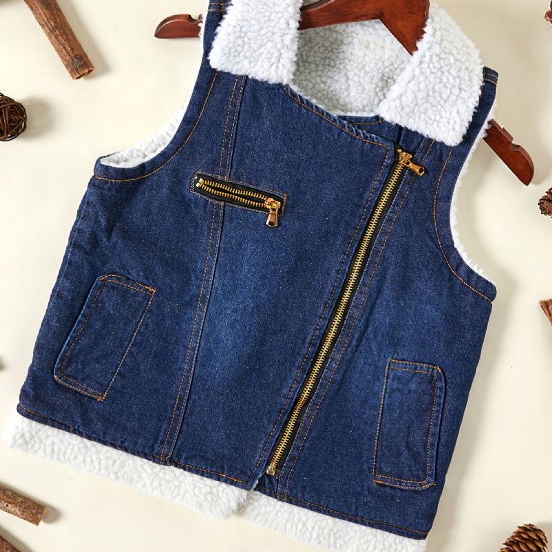 Småbarn Flickor Plysch Blixtlås Jeansväst Vinter