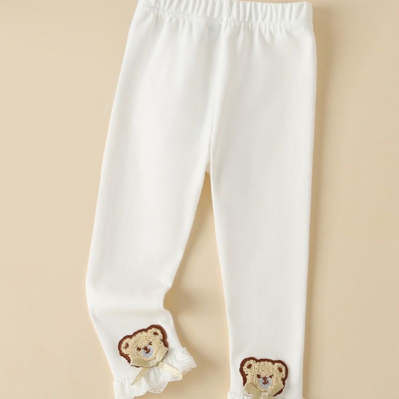 Småbarn Flickor Solida Byxor Bear Ben Spets Leggings