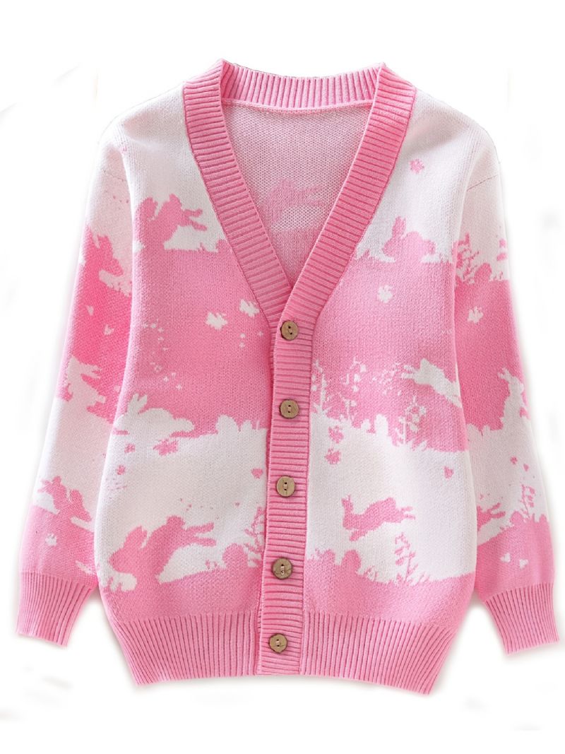 Söt Stickad Koftatröja För Tjejer Med Kanintryck För Vintern