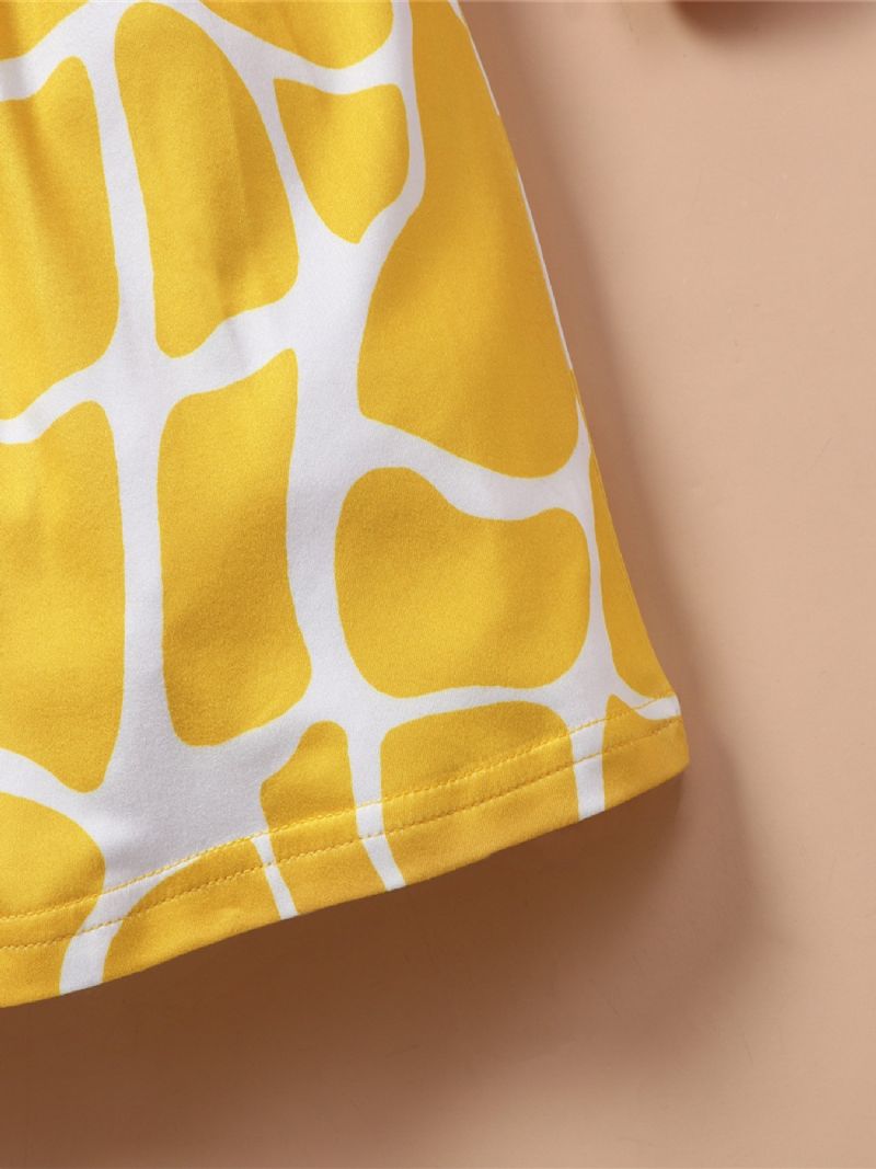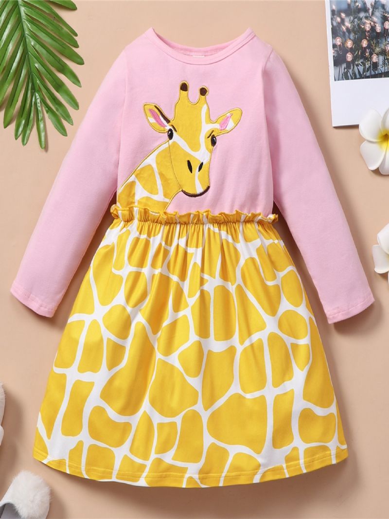 Söt Tecknad Långärmad Giraffklänning Med Rund Hals Rosa Topp Andas Skön Skjorta Lätt Tjejklänning Mjuk Elegant Blus