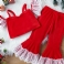Spetshängslen För Flickor + Matchande Utsvängda Byxor Med Spetsdekor Barnkläder Till Jul Kinesiska Nyåret